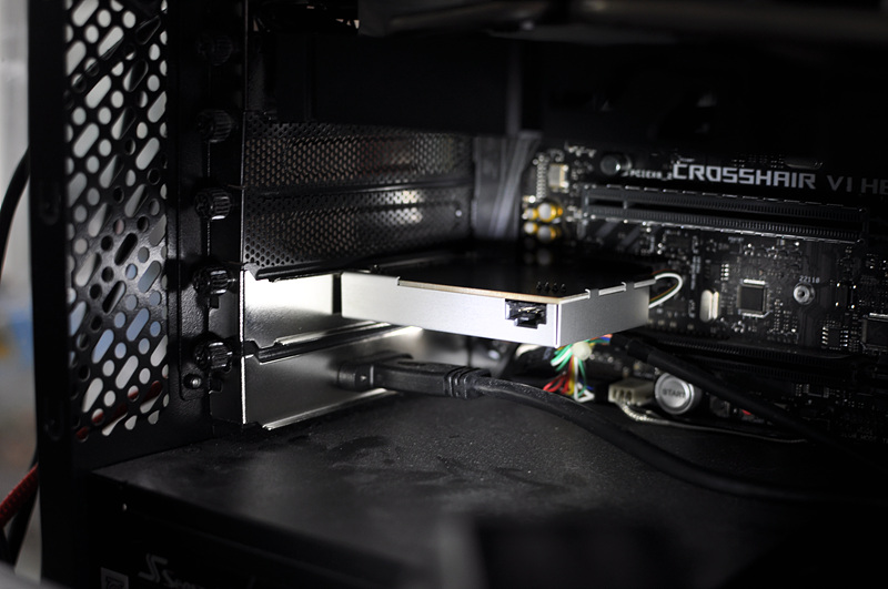 케이스에 넣으니 금속 커버 덕분에 깔끔해 보입니다. 상단 커넥터는 블루투스용 USB 단자인데 제가 사용중인 메인보드에 USB 헤더가 부족해서 내장 허브를 알리에 주문해서 현재 날라오고 있는중입니다. ^^