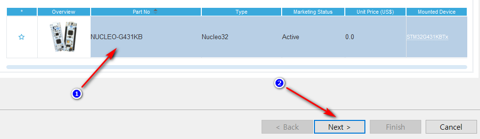 제가 구입한 NUCLEO-G431KB를 입력해 주면 오른 쪽 화면에 해당 제품들이 나열됩니다.