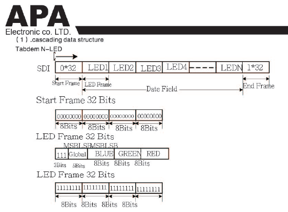 uint8_t ledFrameBuf[LED_COUNT+2][4];	// SPI에 전송할 LED 색상 및 밝기 정보(Frame)