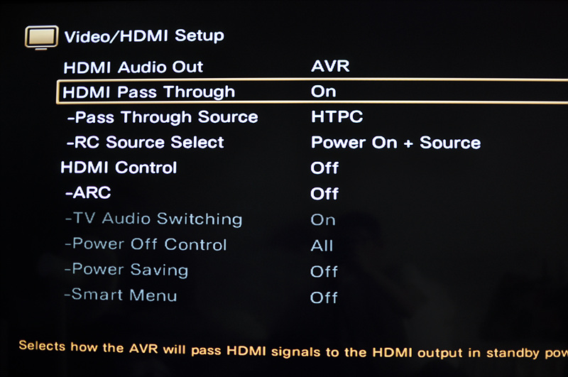 SR875는 오래된 모델이다 보니 HDMI 쪽 성능이 좋지가 않았습니다. 호환성 문제도 있다 보니 PC의 HDMI 출력을 TV로 바로 보내고 오디오 출력은 DVI-to-HDMI 케이블을 이용해서 AV 리시버로 보내는 형태로 사용했죠. 새 AV 리시버를 고르면서 전원이 꺼져 있더라도 PC의 HDMI 출력을 바로 TV에게 전송해 주는 Pass Through 기능이 있는지 확인했었습니다.