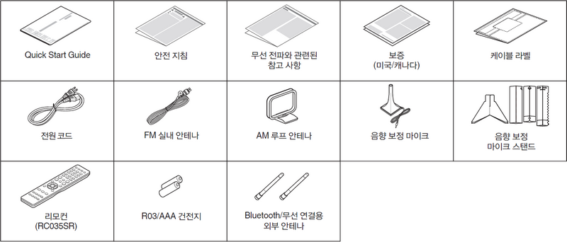 내용물은 AV 리시버의 기본적인 구성품을 가지고 있습니다. 아쉬운 거 하나는 인쇄된 사용자 매뉴얼이 없더군요. 한 두 푼 하는 기계도 아닌데 매뉴얼은 다운로드 해서 보라고 하는 건 좀 아니다 싶습니다. AV 리시버는 기능적으로 복잡하고 초기 설정 과정에서 매뉴얼을 봐야 되는 경우가 많기 때문에 책자를 펼쳐 놓고 보는게 훨씬 좋습니다. 단가절감도 좋지만 몇 천원 더 들더라도 사용자 매뉴얼은 인쇄본을 넣어주길 바래 봅니다.