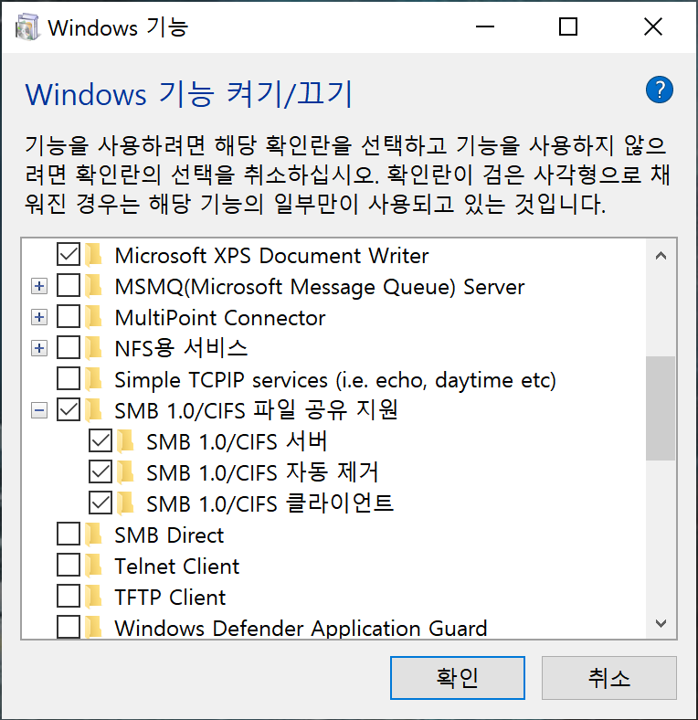 바로 Windows 7부터였나? 보안이 취약한 문제 때문에 SMB 1.0이 기본적으로 비활성화됐었는데요. 구형 기기들을 위해 이를 활성화 할 수가 있습니다. PC에서 이 기능을 설치해 주고 HEOS 앱에서 다시 설정을 시도하니 바로 연결이 되는!!! ^^b