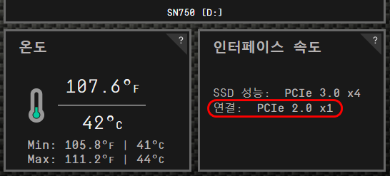 그런데 PC의 PCIe 슬롯에 연결해도 속도가 안 나오는 겁니다. 외장 케이스에 연결했을 때와 거의 비슷한 속도. 심지어 쓰기 속도가 아니라 읽기 속도까지 비슷한 것으로 보아 인터페이스 쪽에 문제가 있다는 걸 예상할 수 있었죠. 하지만 이런 경우 어떻게 해야 될지 난감해하던 차에 WD SSD Dashboard를 실행시켜 봤습니다. 그랬더니...