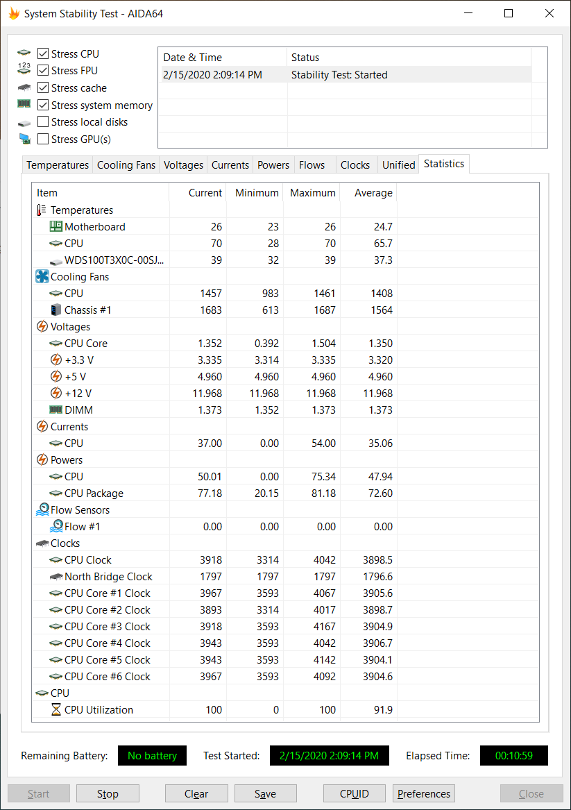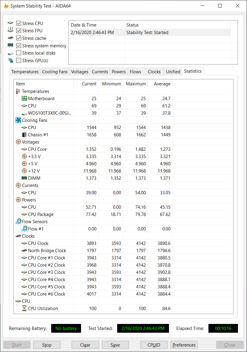 비교를 위해 기존 쿨러에서 10분간 안정성 테스트 돌려 봤습니다.