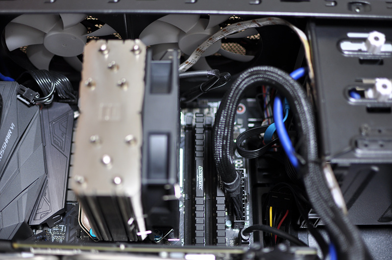 기존 쿨러 사용시 램 슬롯에 팬이 닿습니다. 다행히 사용은 가능하지만 공간이 비좁다 보니 작업성이 좋지 않죠.