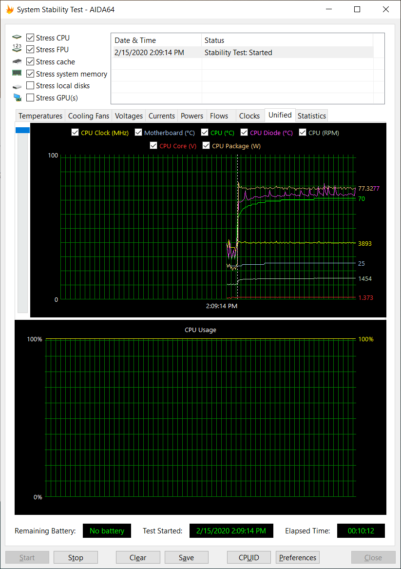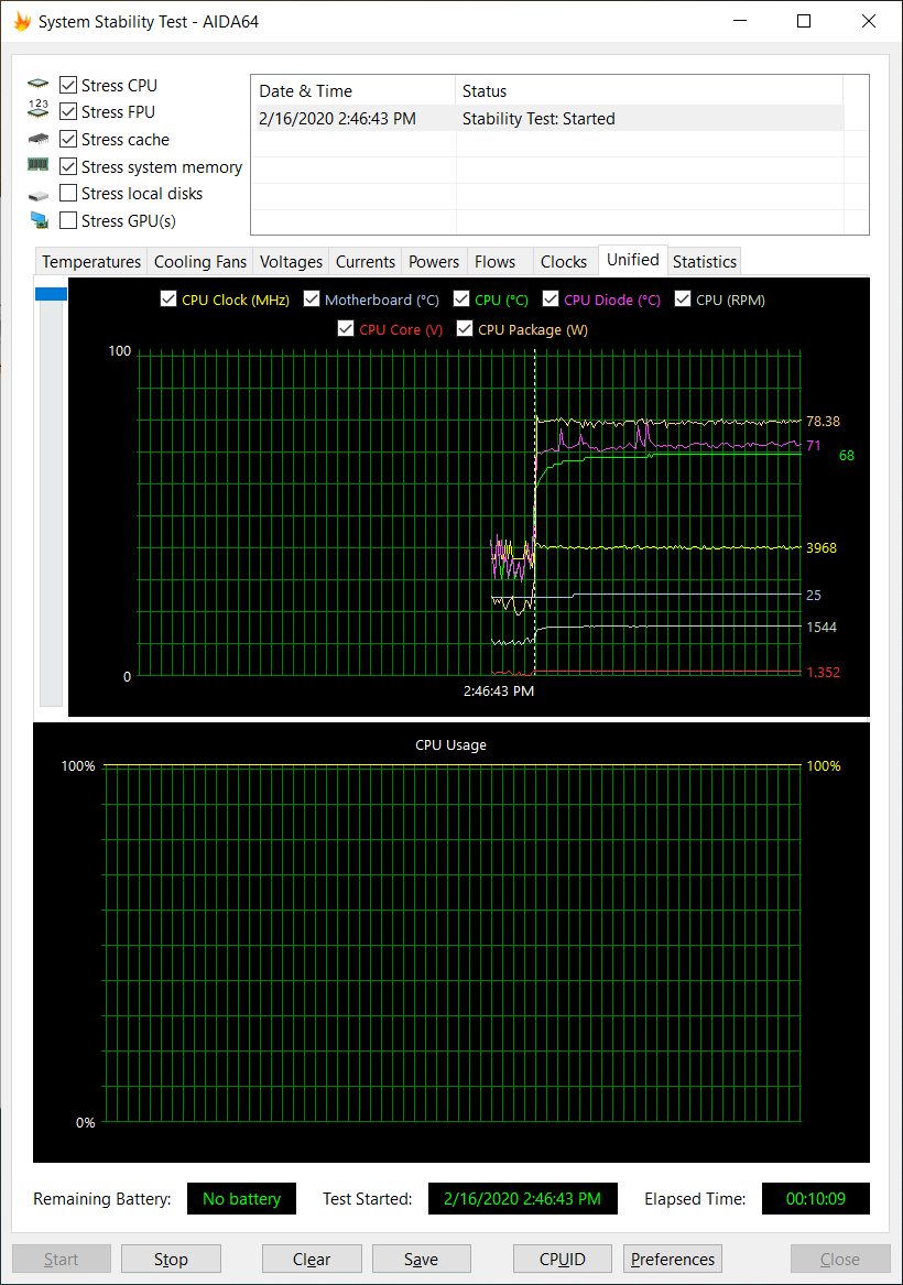 비교를 위해 기존 쿨러에서 10분간 안정성 테스트 돌려 봤습니다.