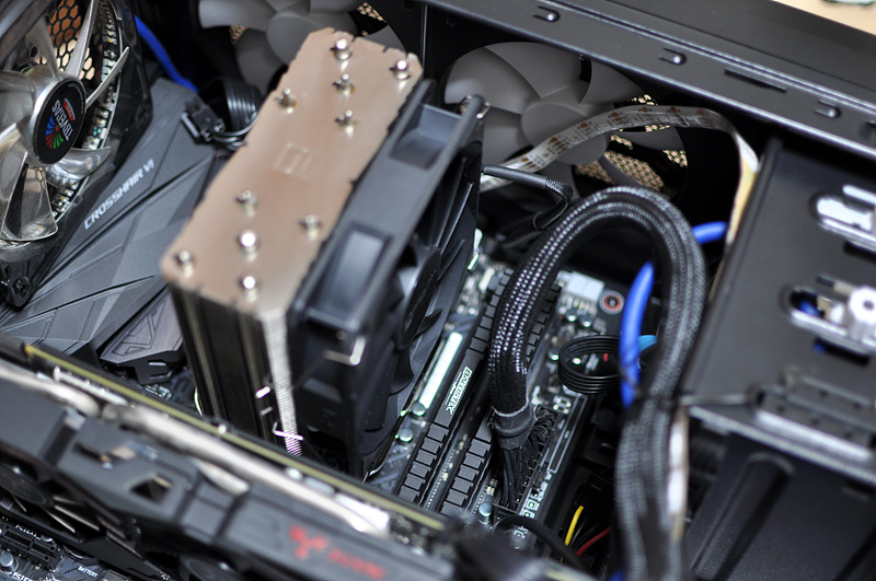 기존 쿨러 사용시 램 슬롯에 팬이 닿습니다. 다행히 사용은 가능하지만 공간이 비좁다 보니 작업성이 좋지 않죠.