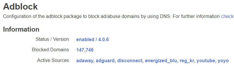 이상으로 adblock에 대한 설치 과정을 마치겠습니다. 집에서 사용하는 많은 장비들이 모두 광고 차단이 되니 너무 좋네요. ^^; OpenWrt 사용하시는 분들은 꼭 한 번 설치해 보시길 바랍니다.