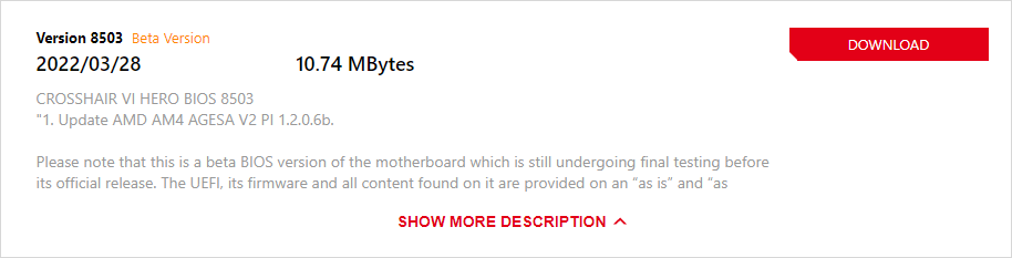 몇 일 전에 C6E가 먼저 정식 버전으로 나왔던 건데 C6H는 왜 베타 버전인지 아리송하네용. 그리고 홈페이지에서 확인 가능한 최초 바이오스 버전은 2017년 3월 13일에 배포된 0902인데 5년 동안 펌웨어 지원이 이뤄지다니 AM4 플랫폼의 호환성은 만족스럽습니다.