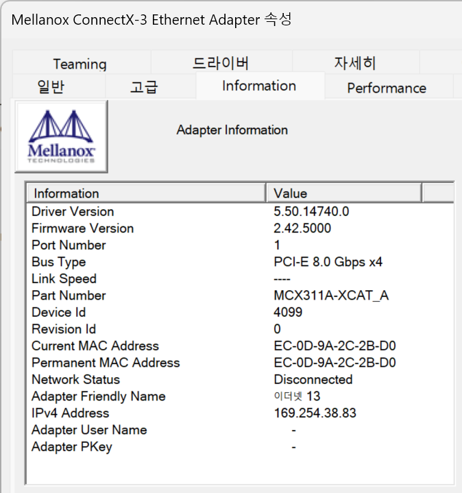 그러다가 멜라녹스 홈페이지에서 드라이버를 찾아 설치를 해 봤더니 펌웨어 업그레이드도 함께 수행되더군요. 괜히 한참 동안 펌웨어 업데이트 유틸과 씨름한 시간이 아깝...