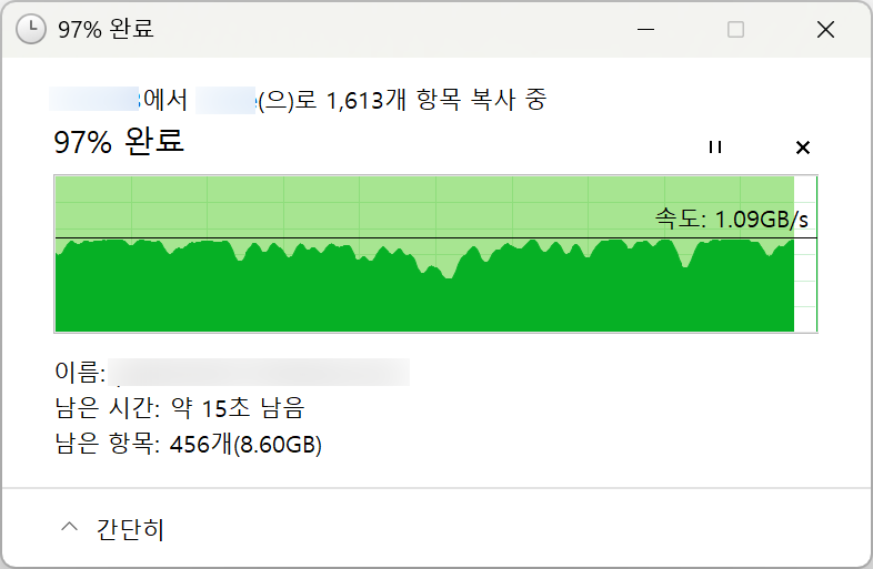 설정을 마치고 복사를 걸어 봤더니 1GB/s 넘는 속도가 나오는 걸 보고는 이틀에 걸쳐 낑낑댄 것에 대한 피로감이 확 날아갑니다. ^^ 그런데 1GB/s 맛을 보고 나니 25G, 40G, 100G 같은 랜카드들에도 호기심이 생기네요. 인간의 욕심은 끝이 없는 것인지? ㅋㅋ 100G면 10GB/s 속도가 나온다는 건데 SSD로도 감당이 안될 속도!