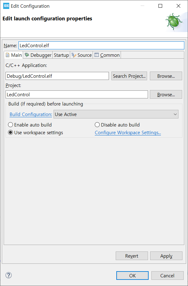 NUCLEO 보드에서 실행하기 위해 다운로드가 필요한데요. 벌레 모양의 Debug 버튼을 누르면 됩니다.