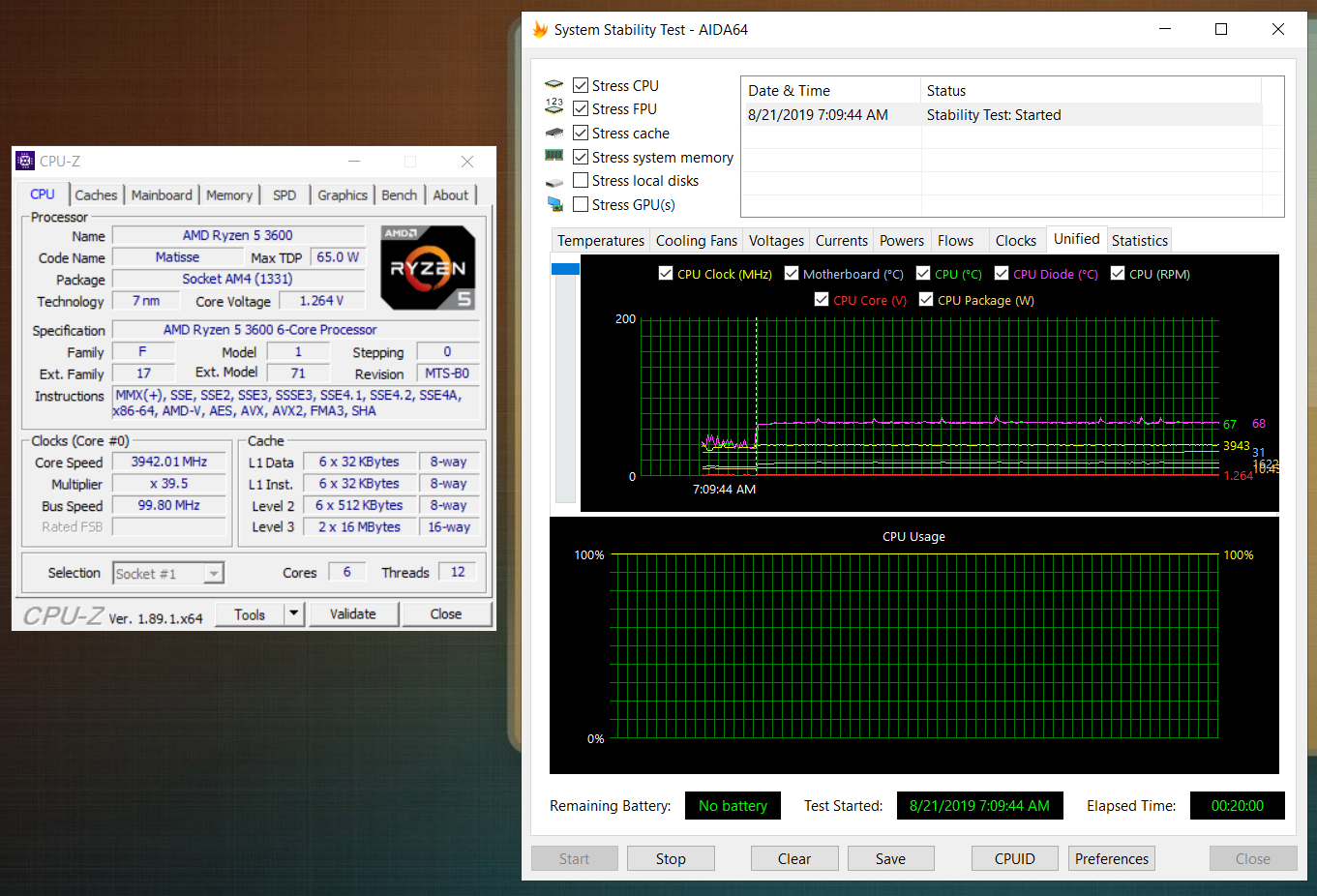 최신 바이오스 7306으로 업데이트 한 후 PBO 활성화, CPU 전압 오프셋 -0.1V 적용 후 안정성 테스트를 돌려 봤습니다. 전압은 1.264V로 들어가면서 올 코어 클럭은 3950 근방에서 고정됩니다. 최대 부스트 클럭까지 기대한 것은 아니지만 조금은 아쉽더군요. 참고로 FPU 옵션을 끄면 4066~75 근방에서 고정됩니다.