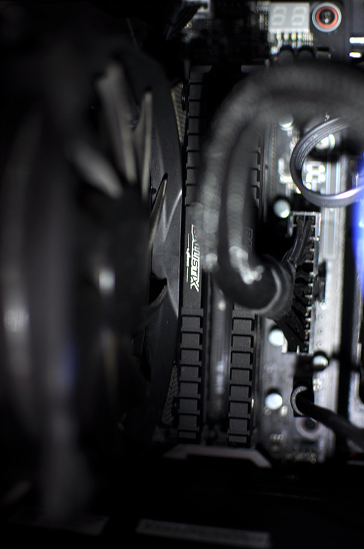 요즘 쿨러들처럼 램 슬롯을 위해 오프셋이 적용되지 않은 관계로 2-4번 슬롯만 사용이 가능합니다. 그나마도 튜닝램 방열판은 살짝 닿네요. ㅠ.ㅠ 하지만 다행히도 팬 위치를 위로 살짝 옮길 수 있는 구조라서 간섭 없이 장착 완료.