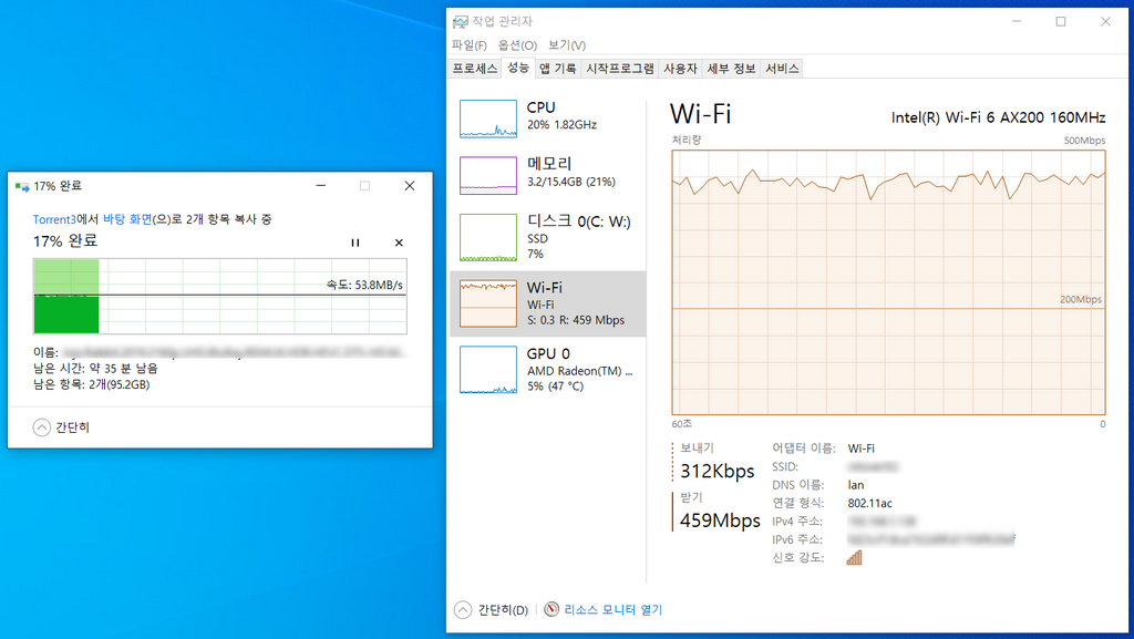 마지막으로 와이파이 성능도 간단히 점검해 봤습니다. 제가 사용하는 AP가 TP-Link Archer C7인지라 AX200의 최대 성능을 측정할 수는 없으므로 참고로만 보시기 바랍니다. AC 80 MHz 스펙에서는 최대한 뽑아내는 것으로 보입니다. AX 지원하는 무선랜 디바이스가 늘어나는 만큼 AX 공유기를 사고 싶은 욕구도 늘어나는 건 어쩔 수가 없군요. ^^;