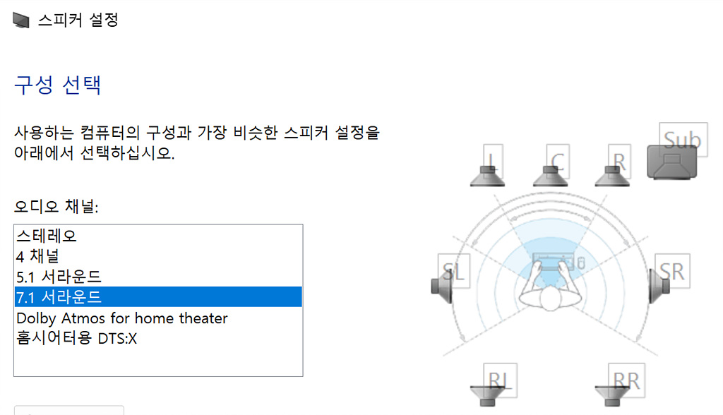 혹시나 싶어 윈도우 스피커 설정을 바꿔봤습니다만...