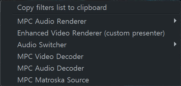 MPC-BE의 필터 정보를 확인해 보니 오디오 디코더로 MPC Audio Decoder를 사용합니다. 기본적으로 내장 코덱들은 ffmpeg / ffdshow 기반이거나 LAV Audio Decoder를 주로 사용하던 데 MPC-BE는 뭔지 잘 모르겠지만 일단 정상적으로 재생되는 걸 보니 Decoder 차이는 분명해 보였습니다. MPC Audio Renderer 도 영향이 있을까 싶어서 다른 렌더러로 변경해 보았지만 정상 재생되는 걸로 보아 영향은 없는 듯했습니다.