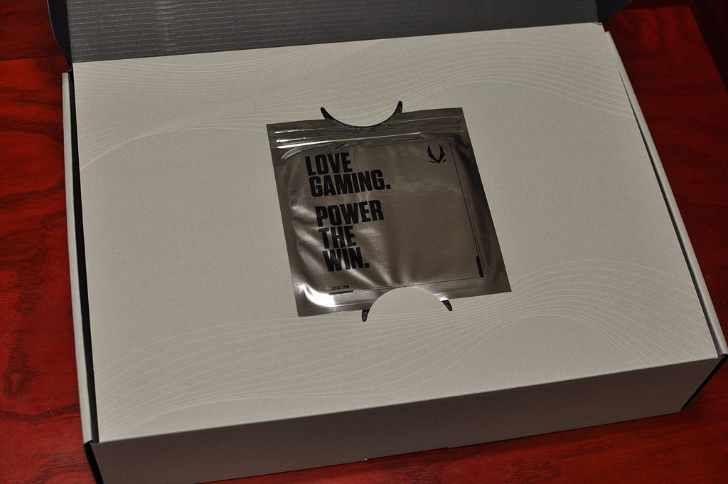겉박스를 벗기고 속박스 뚜껑을 열면 비닐 봉지가 하나 나옵니다. 별 것 아니지만 분위기 있게 넣어놨네요. ^^