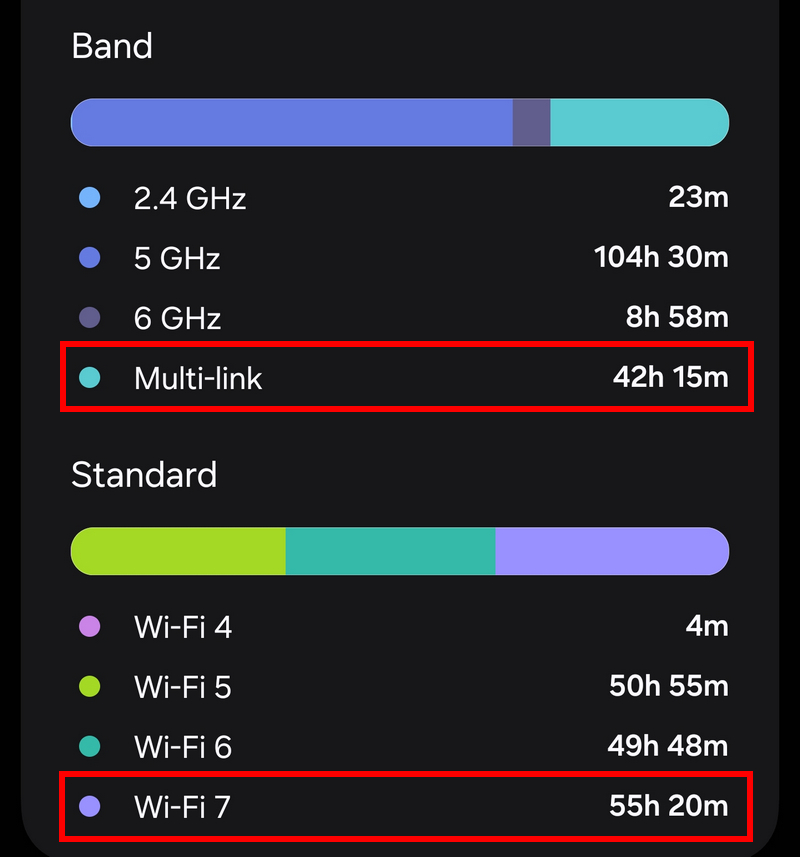 1년 전에 갤럭시 S24 울트라 구매하고 그동안 Wi-Fi 7 기능을 사용해 보지 못했는데 드디어 맛을 보내요. ^^ Wi-Fi 7의 특징 중의 하나인 MLO(Multi-link)도 접속이 잘 됩니다.