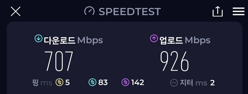 그런데 아쉽게도 저희 집의 1G 인터넷으로는 Wi-Fi 7의 최대속도를 측정할 수가 없었습니다. 이미 예상된 일이긴 했으나 1G 인터넷이 병목이 되는 세상이라니 재밌네요. ^^
